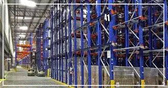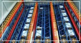 取消了位于各排貨架之間的巷道,每一層、同一列的貨物互相貫通,形成能一次存放多貨物單元的通道,而在另一端由出庫起重機取貨。適用于貨物品種不多而數量又相對較大的倉庫。