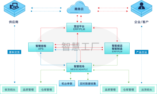 集合MES、SCADA、APS等系統(制造執行、數據采集與監控、高級計劃排程),根據不同行業的制造流程,可選擇性地集合系統管理軟件和人機界面設備(PLC觸摸屏)、LED生產看板、LCD看板、PDA智能手持終端、工業平板電腦、條碼采集器、傳感器、I/O、DCS、RFID、工業AP、WIFI等多類硬件的綜合智能一體化解決方案。智能生產解決方案對原材料上線到成品入庫的整個生產過程實時采集數據、監控、控制和智能分析處理,能控制物料、倉庫、設備、人員、品質、工藝、異常、流程指令和其他設施等工廠資源以提高生產效率。
